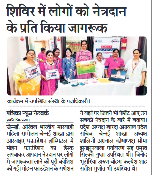 Akhil Bhartiya Marwadi Mahila Sammelan Chennai organised Eye Donation awarness Camp at RYA Cosmo Hospital