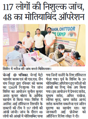 Chennai Metro Mahaveer and SS Jain Sangh Chitoor organised free Eye Camp