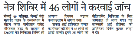 Chennai Metro Mahaveer Club organised free Eye Camp at Shri Ayappa Thiruman Mandapam Kanakchatram