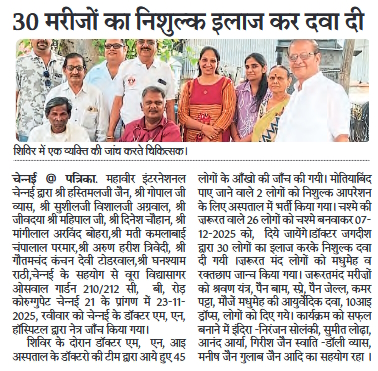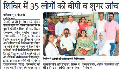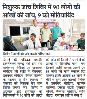 Mahaveer International Chennai Metro organised free Eye Eamp at Jain Bhawan Saidapet