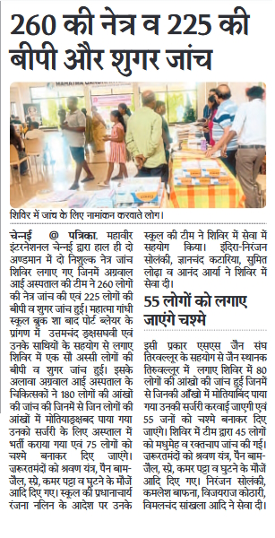 Mahaveer International Chennai organised free health camps at AMKM Hall & Jain Bhavan Ambattur Health Camps / By admin