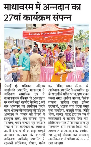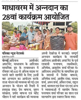 Adinath Samayik Group of Adinath Ashirvad Apartment, Madhavaram, food was distributed to more than 600 pedestrians for the 28th time. Annadanam / By admin