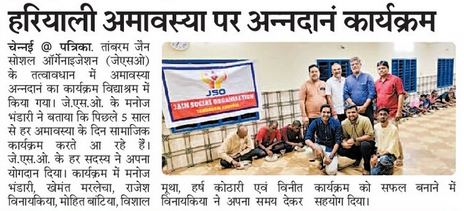 Amavasya Annadanam program was organized at Vidyashram under the aegis of Tambaram Jain Social Organization (JSO) Annadanam / By admin