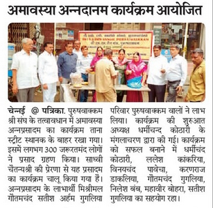 Amavasya Annaprasadam program was organized outside Tana Street Sthanak under the aegis of Purushavakkam Sri Sangha Annadanam / By admin