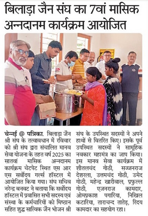 Annadanam program under the Manav Seva Yojana run by Shri Sangh under the aegis of Bilada Jain Shri Sangh Annadanam / By admin