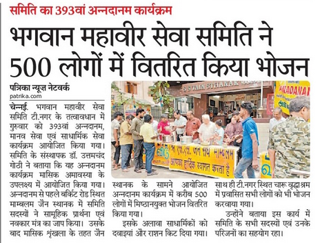The 393rd Annadanam, Manav Seva and Dharmik Seva program was organized under the aegis of Bhagawan Mahaveer Seva Samiti T. Nagar Annadanam / By admin