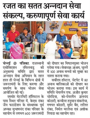 Rajasthani Association Tamil Nadu, under Annadaan Seva Campaign, organised food service with compassion and dedication for the needy in various areas of Chennai Annadanam / By admin