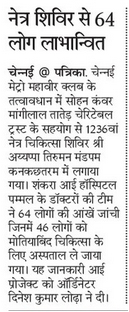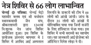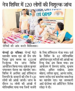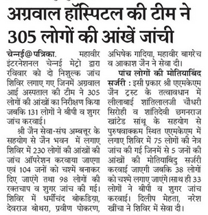 Mahavir International Chennai Metro organised two free eye check-up camps on Sunday in which the team of Agarwal Eye Hospital examined the eyes of 305 people Eye Camps / By admin