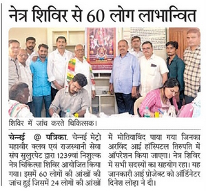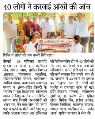 Eye Camps / By admin Mahavir International Chennai Metro organised two free eye checkup camps in which the team of Agarwal Eye Hospital conducted eye checkup of 120 people
