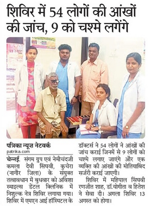 A free eye camp was organised at Avisha Smiles Dental Clinic under the joint aegis of Sangam Group and Nemichandji Kamala Devi Singhvi, Kuchera (Nagaur District) Eye Camps / By admin