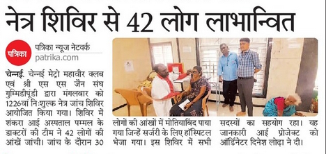 Chennai Metro Mahaveer Club and Sri S S Jain Sangh Gummidipoondi organized the 1226th free eye check-up camp Eye Camps / By admin