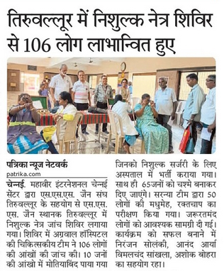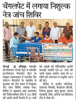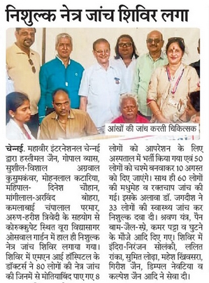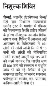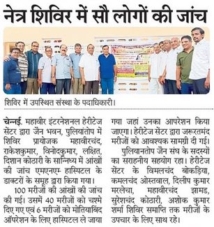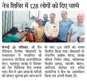 An eye treatment camp was organised at Shri Javantraj Choradia Diagnostic Centre, Mylapore branch, by Shri Jain Medical Relief Society Eye Camps / By admin