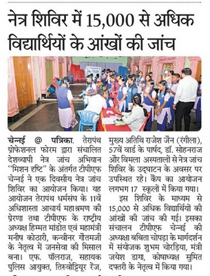 TPF Chennai organized a one day eye check-up camp under the nationwide eye check-up campaign “Mission Drishti” run by Terapanth Professional Forum Eye Camps / By admin