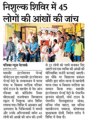 Mahavir International Chennai Metro in association with Mishrimal Sajjandevi Chhajed Trust organised a free eye check-up camp at the premises of Praveen Jewellers in Thiruvaniyar Eye Camps / By admin