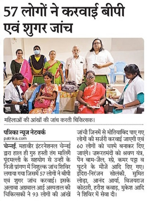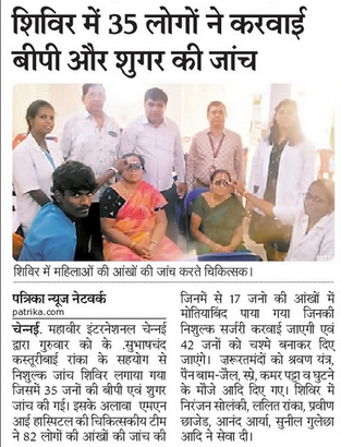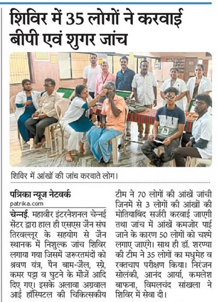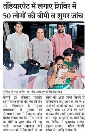 Mahavir International Chennai organised a free checkup camp on in which BP and sugar of 35 people were checked Health Camps / By admin