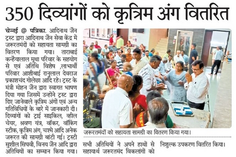 Adinath Jain Trust distributed relief material to the needy at Adinath Jain Seva Kendra. Health Camps / By admin