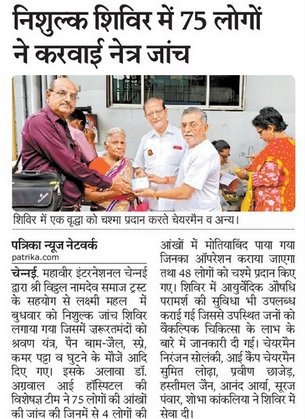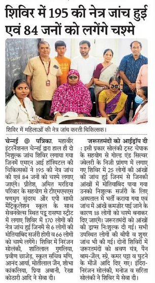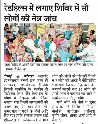 Mahavir International Chennai organised two free check-up camps in which conducted eye check-ups for 195 people and provided spectacles to 84 people. Health Camps / By admin