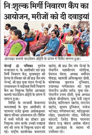 Shri Pragya Jain Sangh Chennai, Shri Pragya Yuva Mandal Chennai, the 22nd free epilepsy prevention camp was organised in the premises of RYA Cosmo Foundation Otteri. Health Camps / By admin