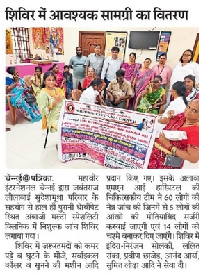 Distribution of essential items by Mahaveer International Chennai : 21-June’25 Health Camps / By admin