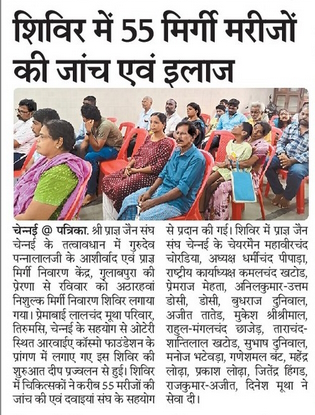 Free epilepsy prevention camp organised by Shri Prajna Jain Sangh Chennai at RYA Cosmo Day Care Centre / Health Camps / By admin