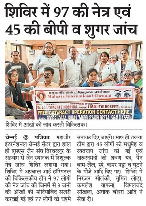 Mahavir International Chennai Centre organised a free eye check-up camp at Jain Sthanak in association with SS Jain Sangh Tiruvallur / Eye Camps / By admin