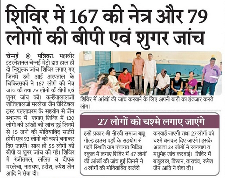 Mahavir International Chennai Metro recently organised two free check-up camps in which doctors from Udi Eye Hospital treated 167 people. / Eye Camps / By admin
