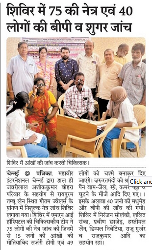 Mahavir International Chennai organised a free eye check-up camp in the premises of Gautam Jewellers at Royapuram / Eye Camps / By admin