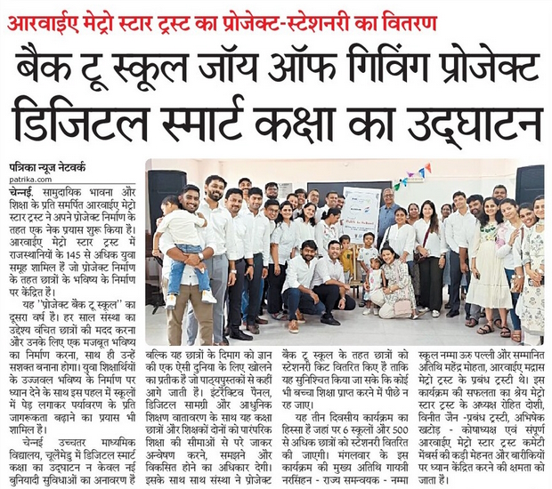 RYA Metro Star Trust’s Project – Distribution of Stationary Back to School Joy of Giving Project Digital Smart Classroom inaugurated