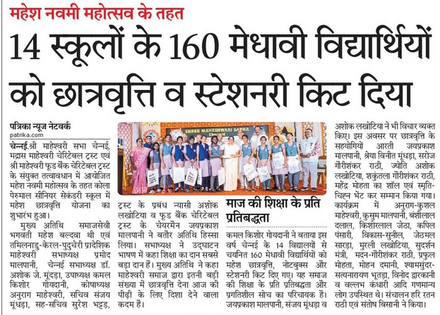 Scholarship & Stationery Kit to 160 students by Maheshwari Sabha : 17-June’25 / Educational, Scholarship / By admin